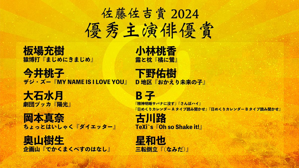 佐藤佐吉賞2024優秀主演俳優賞受賞のお知らせ
